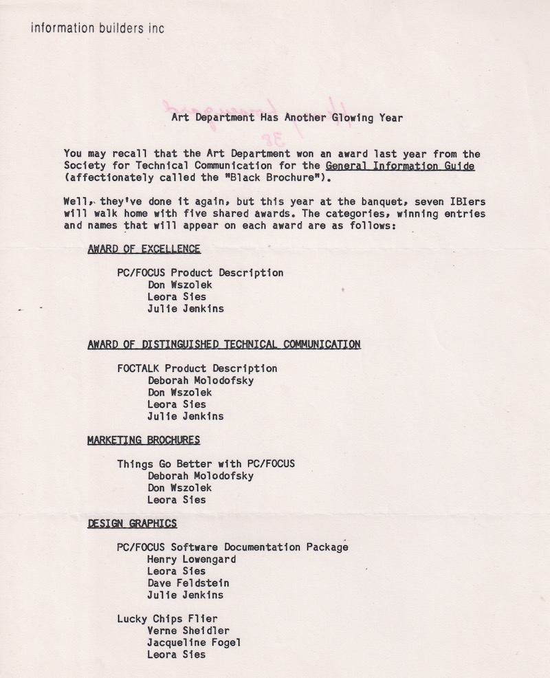 And here's why the award was awarded. Society for Technical Communication, 1981 or so.